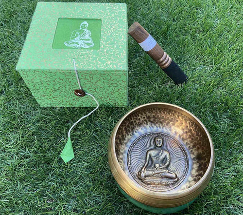 Singing Bowl-Gift set-Hand beaten-11cm-Buddha Carved