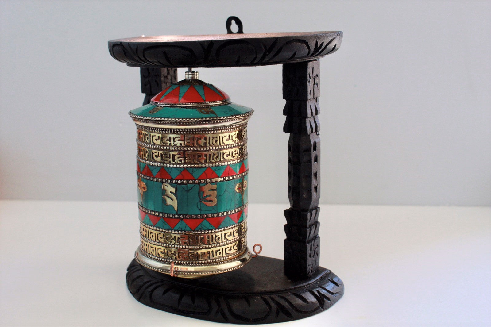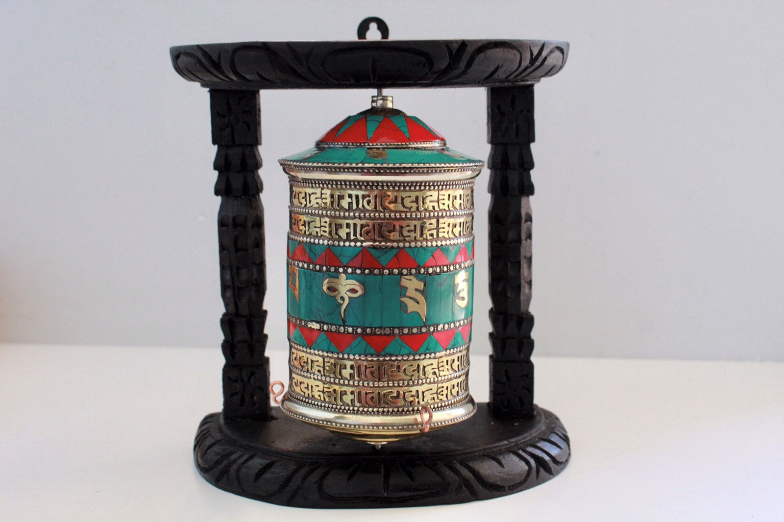 Item name: Tibetan Prayer Wheel in Wooden Frame-Turquoise