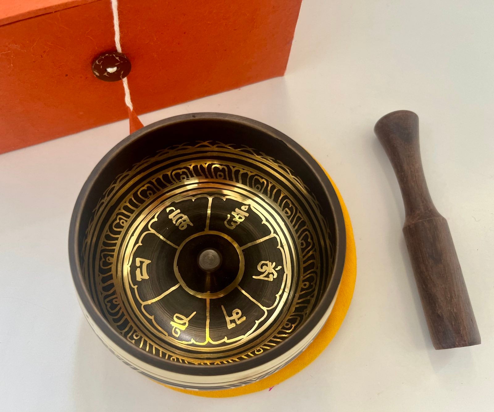 Bring stillness, sound, and sacred intention into your space with this authentic Tibetan Singing bowl. When played, it produces a warm, grounding tone that supports meditation, mindfulness, reiki, yoga, and energy cleansing.